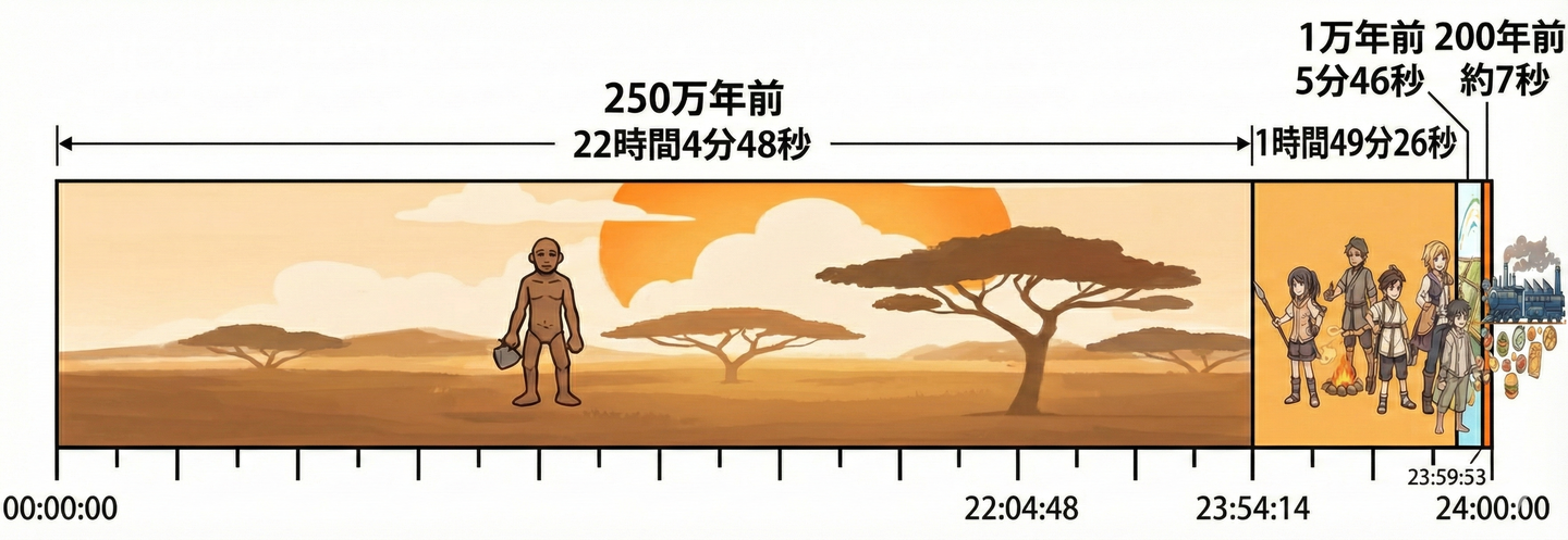 血糖値を上げるホルモンが複数存在する一方で、下げるホルモンがインスリンだけである理由。それは、私たちの体が飢餓という厳しい環境を生き抜くために最適化された結果です。血糖値ホルモンに見られるこの「1対多」の不均衡は、祖先の過酷な歴史が刻んだ