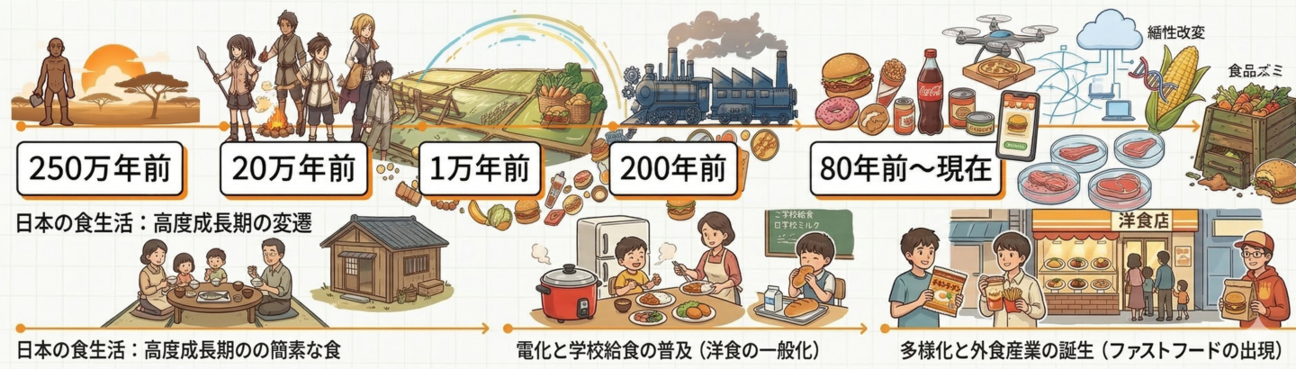 私たちが生きる現代のように、いつでも好きなだけ食べられる「飽食の時代」は、人類の長い歴史から見ると、ほんの瞬きほどの短い期間にすぎません。この環境の急激な変化によって、人類は初めて「エネルギー不足」ではなく、「エネルギー過剰」、つまり 高血糖 という新しい問題に直面することになりました。