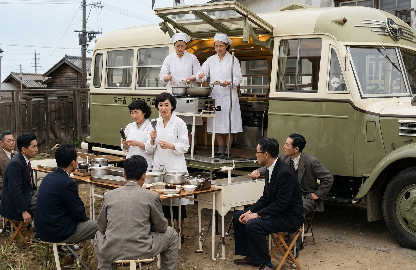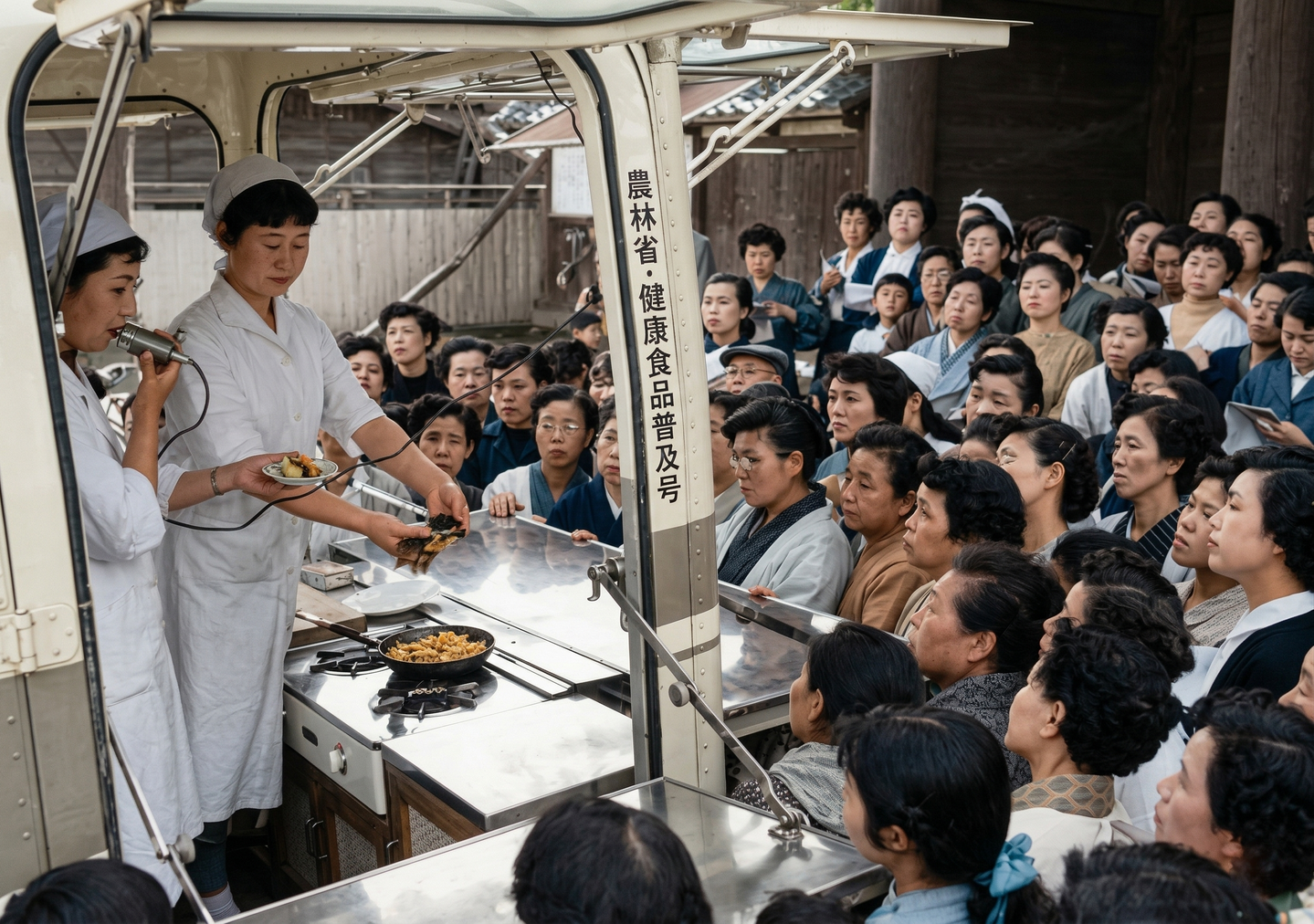 オレゴン州小麦生産者連盟などの米国農業団体が資金を提供し、全国でキッチンカーを用いた栄養指導が行われた。これは「粉食推奨運動」の一環であり、小麦を用いた料理の実演を通じて食生活の転換を促した。